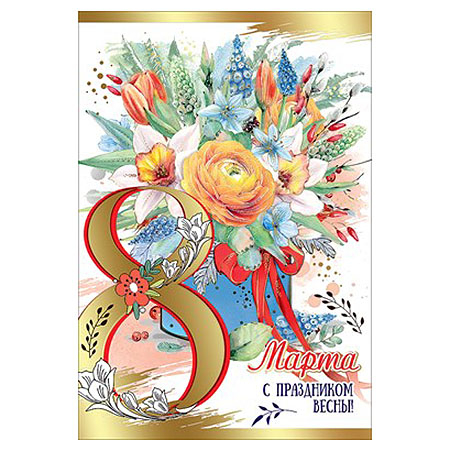 Открытка " Праздник " 475 8 Марта- С праздником весны! Букет, 126*182мм, фольга золотая, конгрев, те