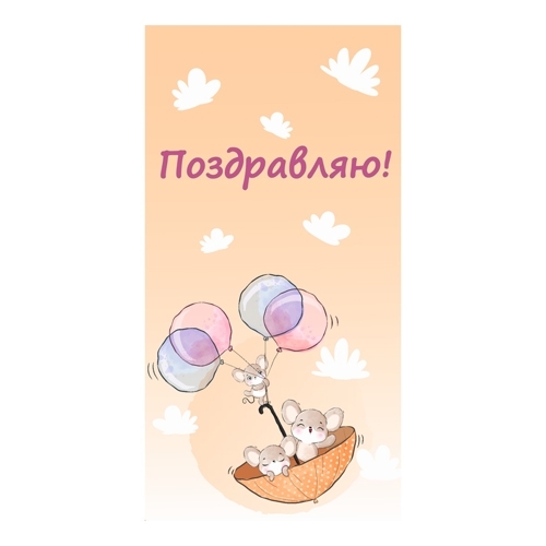 Конверт для денег " Миленд " 1-04 Поздравляю! Мышки с шариками, 164*85мм