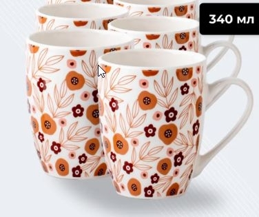 Набор кружек JEWEL Джой -8 340 мл (фарфор)