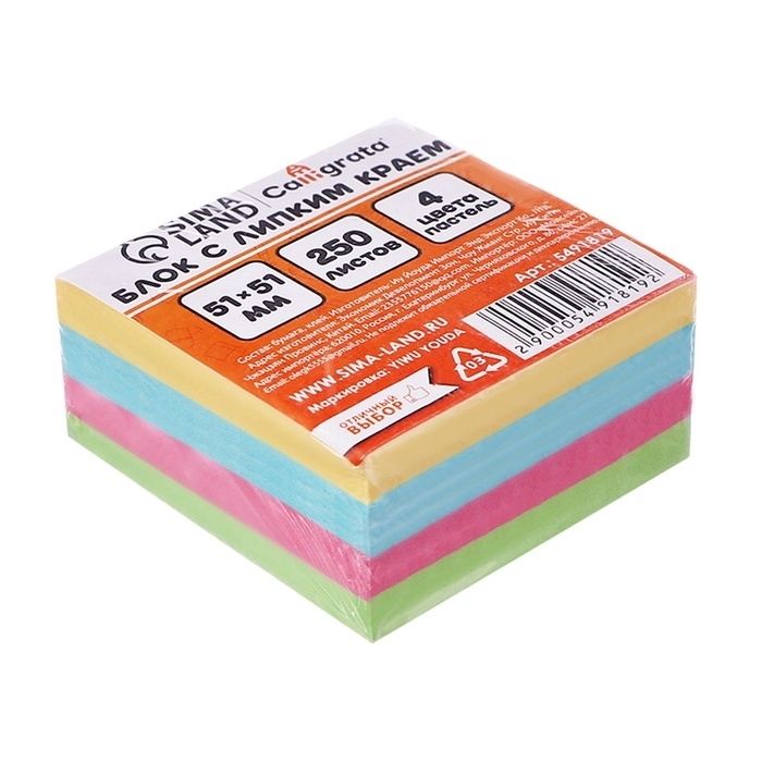 Блок с липким краем 51мм*51мм 250л, 4 цвета пастель 5491819
