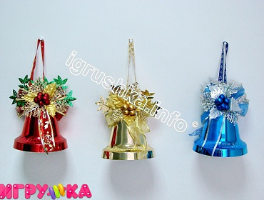 КОЛОКОЛЬЧИК С БАНТОМ ЯГОДАМИ И ЛИСТЬЯМИ 20СМ В ПАКЕТЕ